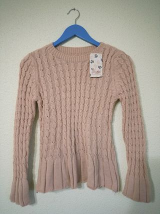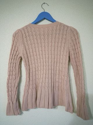 Jersey de punto en color rosa, ideal para añadir un toque de color a tu armario. - Diseño con trenzas. - Puño ancho en las mangas y en el bajo. - Sin estrenar.