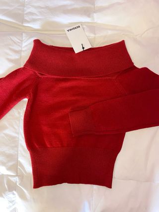 Jersey NUEVO rojo cuello Bardot de Bershka