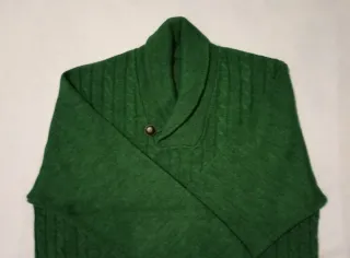 Jersey de punto para hombre con un diseño de trenzas en los hombros. Cuello tipo chal y cierre de botón. - Tejido de punto con textura. - Diseño de trenzas. - Cuello chal. - Cierre de botón. Dimensiones: - Hombro a borde inferior: 60 cm - Axila a axila: 50 cm En perfecto estado, casi no se ha usado. Más prendas en mi perfil.