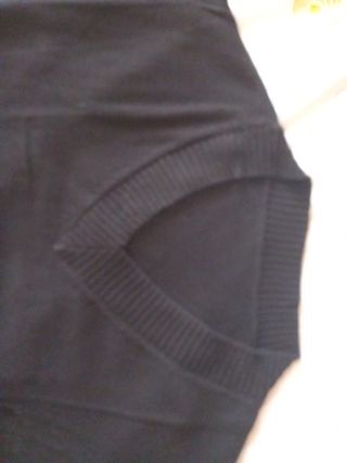 Jersey de punto fino con cuello en V. Ideal para añadir una capa extra de abrigo. - Tejido suave al tacto. - Diseño clásico y versátil. - Apenas se ha utilizado.