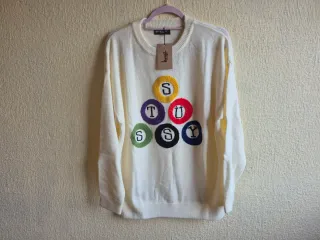 Jersey de Stüssy con un diseño llamativo de bolas de billar. - Diseño frontal con bolas de billar bordadas. - Cuello redondo y mangas largas. - Tejido de punto suave.