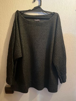 Jersey 20% lana con estampado talla L hilo plata plata, medida sisa 50cm Puesto una ocasion - Diseño de rombos y grecas. - Cuello redondo. - Manga larga.