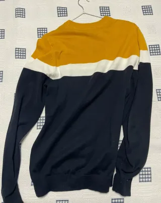 Jersey de Lefties con un diseño moderno y juvenil. - Diseño de tres colores: amarillo, blanco y azul marino. - Cuello redondo. - Manga larga.