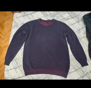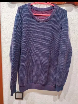 Jersey de punto para caballero con unos tonos preciosos entrelazando morados y granate. Usado dos veces. Talla XXL. 100% algodón. Muy gordito, da calor. - Cuello redondo. - Manga larga. - Puños y bajo elásticos. #jersey #algodon #morado #granate #xxl #caballero #hombre