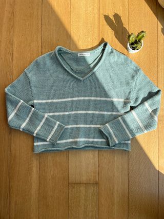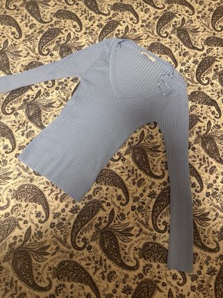 Jersey canalé cuello pico azul Stradivarius T. S