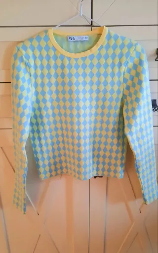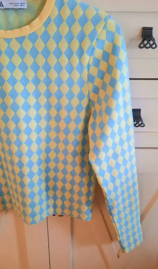 Jersey Zara Diamantes Azul y Amarillo Talla S
