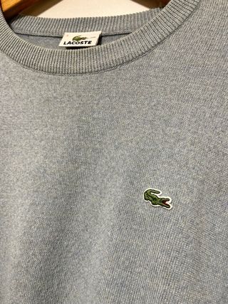 Jersey de punto fino de la marca Lacoste. - Color gris jaspeado. - Logo del cocodrilo bordado en el pecho. - Cuello redondo.