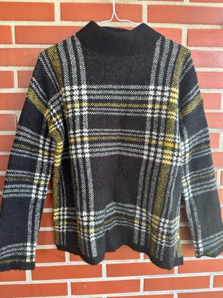 Jersey de punto con estampado de cuadros. - Diseño de cuello alto. - Manga larga. - Tejido suave y cálido.