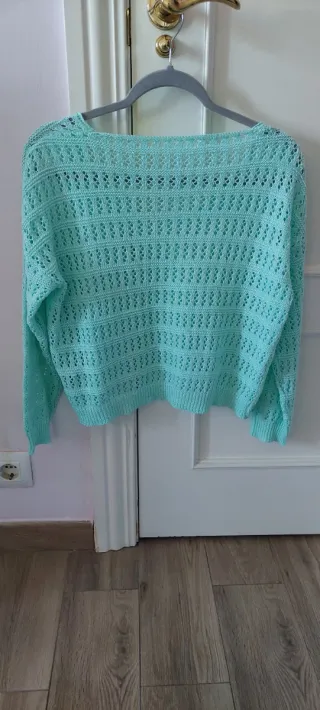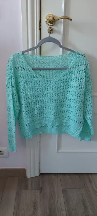 Jersey fino de punto calado color verde agua