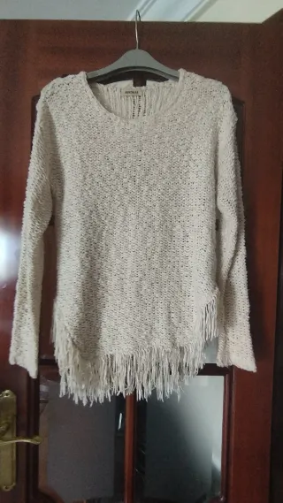 Jersey beige con flecos