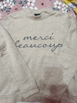 Jersey de cuello alto con estampado merci beaucoup. - Manga larga. - Tejido suave y cómodo.
