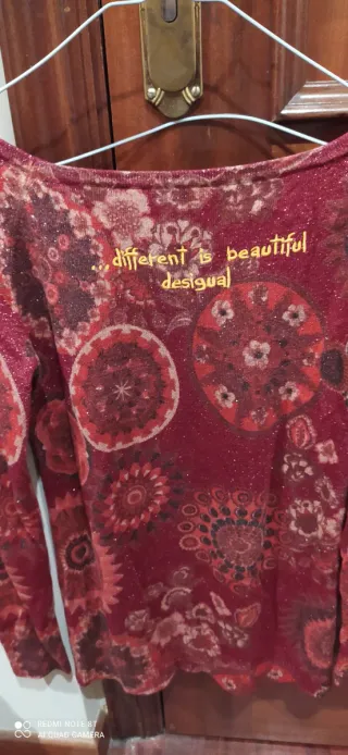 Jersey de manga larga con un estampado brillante. Burdeos - Diseño con motivos florales y circulares. - Tejido ligero con acabado metalizado. - La etiqueta interior está cortada