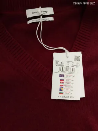 Jersey de punto fino con cuello en V. - Diseño liso. - Logo bordado en el pecho. Talla XL A estrenar con etiquetas Excelente calidad Precio en tienda 89,90 €