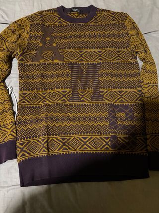 Jersey de punto con un diseño llamativo y moderno. - Tejido texturizado. - Parche frontal con logo de la marca y detalles de color. - Cuello redondo. equivale a una XS -S está nuevo