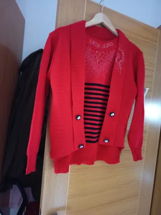 Jersey de punto para mujer de color rojo. Talla S. Sin estrenar.