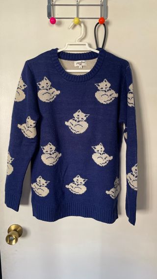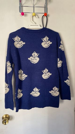 Jersey azul con estampado de gatitos. - Diseño de cuello redondo. - Manga larga. Marca: Pepa Loves. Talla S, aunque podría valer perfectamente para una talla M también.