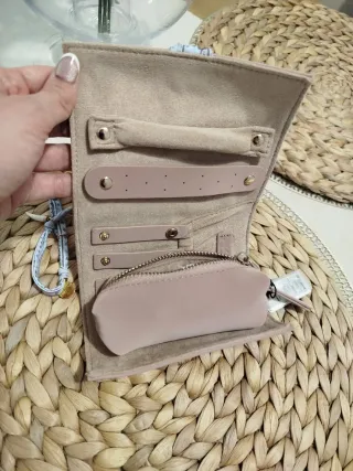 Práctico neceser o bolsito diseñado para guardar tus joyas. - Diseño con textura de piel. - Cierre de cremallera dorada.