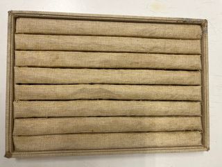 Expositor organizador para anillos y joyas. - Diseño de múltiples compartimentos. - Material de tela resistente. Como se ve en las fotos ha tenido uso pero esta arreglado y puede seguir usandose con normalidad.