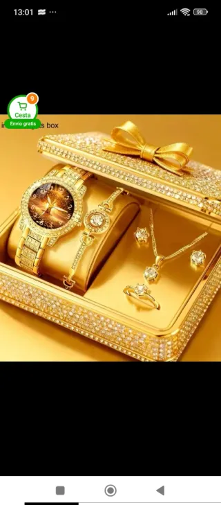 Elegante conjunto de bisutería y reloj. - Reloj con correa y detalles brillantes. - Pulsera a juego con circonitas. - Collar con colgante de circonita. - Pendientes a juego. - Anillo con circonita.nuevo a estrenar reloj anillo pendientes cadena y colgante para hombre y para mujer LA UNIDAD A 30€