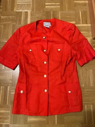 Elegante camisa roja de estilo vintage, perfecta para añadir un toque sofisticado a tu armario. - Diseño con botones joya dorados. - Corte clásico. - Manga corta.