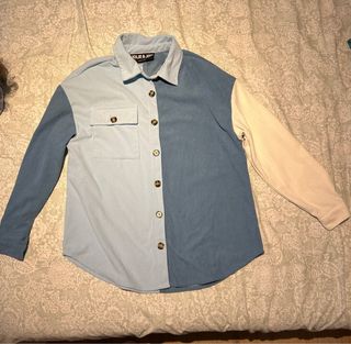 Sobrecamisa de pana con diseño de bloques de color. - Manga larga. - Cierre de botones. - Bolsillo en el pecho.