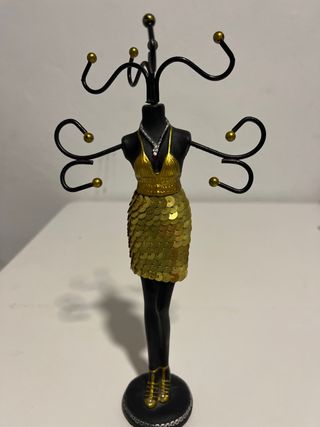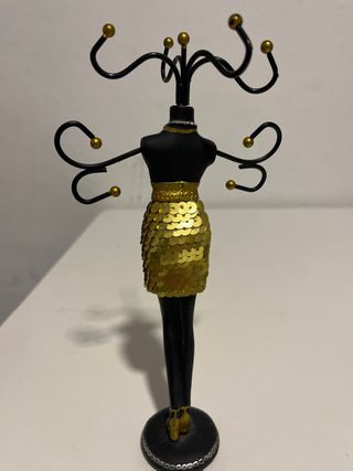 Organizador de joyas con un diseño elegante de maniquí. - Soporte para collares y pulseras. - Brazos con ganchos para pendientes. - Base estable.