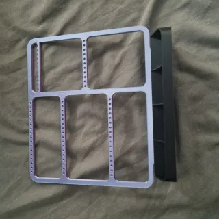 Este organizador de joyas cuenta con un diseño práctico para mantener tus accesorios ordenados. - Marco exterior en tono morado con acabado mate. - Bandeja interior en color negro. - Múltiples compartimentos para diferentes tipos de joyas. - Diseño con perforaciones a lo largo de los bordes - Impresión 3d.
