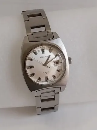 Elegante reloj Seiko de estilo vintage con una esfera blanca de 2.5 cm y detalles plateados. Serie 2118-0390 Funciona con pilas, ahora mismo va pero no descarto para su buen funcionamiento que se tenga que cambiar pronto - Movimiento mecánico de 17 rubíes. - Correa de eslabones metálicos. - Caja de forma rectangular.