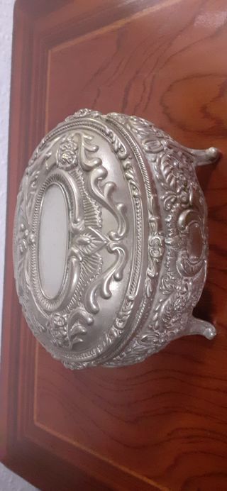 Joyero antiguo estaño plateado. Caja cofre joyas.