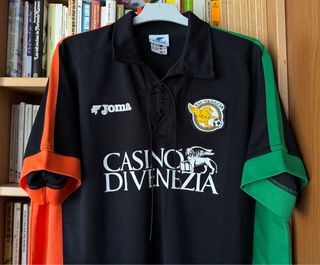Talla L. Totalmente original/oficial y en buen estado, con uso pero sin grandes desperfectos, tal y como se puede apreciar en las fotos. Camiseta negra de local utilizada en la temporada 2006/2007, marca Joma y con publicidad de Casino di Venezia. Toda una joya para coleccionistas y aficionados del Venezia Football Club. Tags: London, Inter de Milán, Atleti, Países Bajos, camiseta Barcelona kappa, camiseta Barcelona antigua, 1990s, 1980s, maglia calcio, maillot foot, football, soccer, originals, 1999/2000, Real Madrid vintage, Real Madrid kelme, camiseta antigua, vintage, retro.