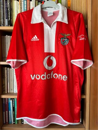 Talla M. Totalmente original/oficial y en buen estado, con uso pero sin grandes desperfectos, tal y como se puede apreciar en las fotos. Camiseta roja de local utilizada en las temporadas 2003/2004/2005, marca Adidas y con publicidad de Vodafone. Toda una joya para coleccionistas y aficionados Del SL Benfica de Lisboa. Tags: Portugal, Koln, Inter de Milán, Atleti, Países Bajos, camiseta Barcelona kappa, camiseta Barcelona antigua, 1990s, 1980s, maglia calcio, maillot foot, football, soccer, originals, 1999/2000, Real Madrid vintage, Real Madrid kelme, camiseta antigua, vintage, retro.