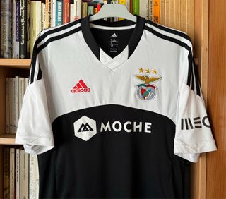 Talla S. Totalmente original/oficial y en muy buen estado, con uso pero sin grandes desperfectos, tal y como se puede apreciar en las fotos. Camiseta blanca y negra de visitante utilizada en la temporada 2013/2014, marca Adidas y con publicidad de Moche. Toda una joya para coleccionistas y aficionados Del SL Benfica de Lisboa. Tags: Portugal, Koln, Inter de Milán, Atleti, Países Bajos, camiseta Barcelona kappa, camiseta Barcelona antigua, 1990s, 1980s, maglia calcio, maillot foot, football, soccer, originals, 1999/2000, Real Madrid vintage, Real Madrid kelme, camiseta antigua, vintage, retro.