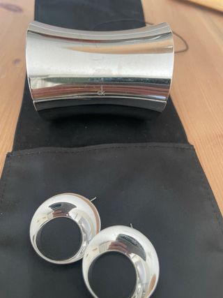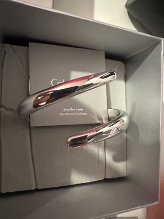 Conjunto brazalete y pendientes de plata de CK Algún pequeño arañazo pero que puliendo sale Los pendientes vienen con la funda original y son de tuerca