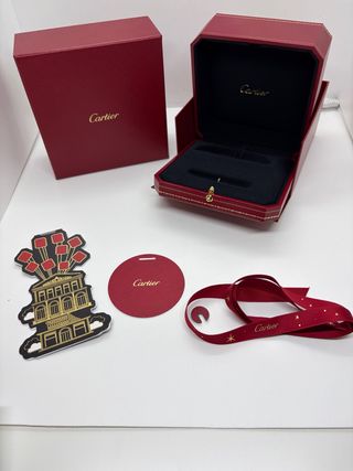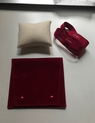 Incluye caja original Cartier y bolsa de terciopelo. - Caja de color rojo. - Bolsa interior de terciopelo negro.