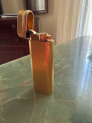 Elegante mechero de la marca Cartier. - Diseño clásico y refinado. - Acabado en tono dorado.