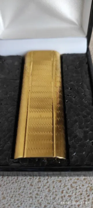 Elegante mechero con baño de oro. - Diseño clásico y refinado. - Acabado texturizado.