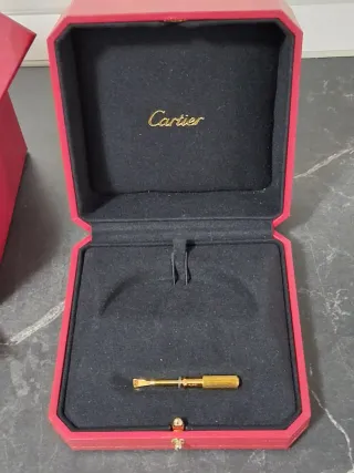 Herramienta para pulsera Cartier LOVE. - Diseño elegante en tono dorado. - Ideal para ajustes y mantenimiento de la pulsera.