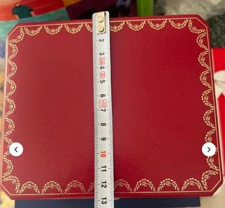 Esta es la caja original de Cartier, perfecta para guardar tus joyas o accesorios. - Color rojo vibrante. - Interior forrado en terciopelo negro. - Logo de Cartier grabado en dorado en el interior.