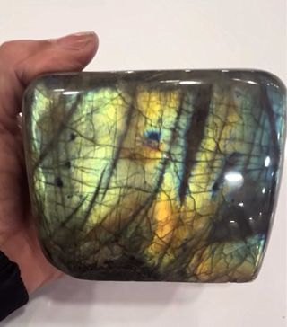 Hermosa piedra de labradorita con destellos iridiscentes. Conocida como la piedra del misticismo y la transformación, la labradorita es esencial en cualquier práctica holística. Su iridiscencia, o labradorescencia, no es solo hermosa, sino que simboliza el velo entre nuestro mundo y los reinos superiores. • 🛡️ Escudo Energético: Actúa como una poderosa protectora, formando - Tonos verdes y amarillos vibrantes. - Patrones únicos y llamativos. - Forma pulida y suave al tacto.