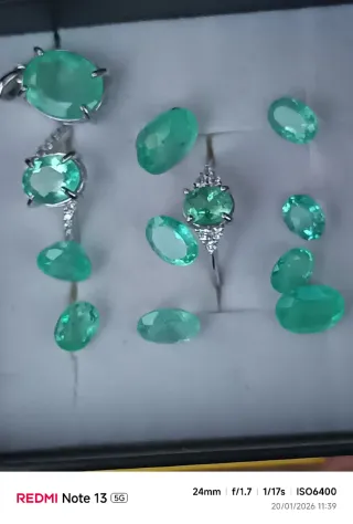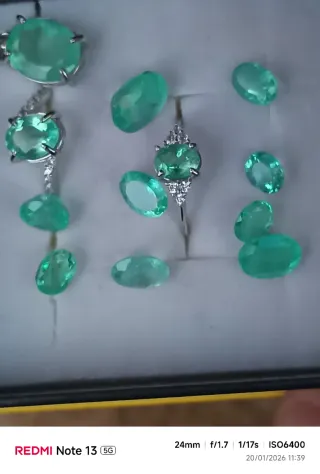 Lote de esmeraldas naturales con un hermoso brillo. - Piedras preciosas de color verde y turquesa. - Variedad de cortes y tamaños.
