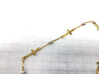 El precio mostrado es el de venta en nuestra tienda. El precio de este producto en nuestra página web puede ser diferente. Este artículo está disponible en nuestra tienda de Zaragoza. pulsera oro 18k CC052_E702160_0 es un objeto que se ofrece en estado excelente. Todos nuestros productos cuentan con garantía de 3 años y un plazo de devolución de 14 días. Estado producto: No | Gramos: 1.49 | Marca: Sin marca | Modelo: Sin modelo | Contraste: Si | Tipo de oro en kilates: Oro primera ley (oro 18k) | Detalles joya: Pulsera cruces alternas con bolitas en oro bicolor | Color de las piedras: - | Peso piedras: 0 | Genero-tipo: Mujer