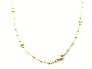 El precio mostrado es el de venta en nuestra tienda. El precio de este producto en nuestra página web puede ser diferente. Este artículo está disponible en nuestra tienda de Murcia. cadena oro 18k 21cm CC051_E569589_0 es un objeto que se ofrece en estado excelente. Todos nuestros productos cuentan con garantía de 3 años y un plazo de devolución de 14 días. Gramos: 10.11 | Marca: Sin marca | Modelo: Sin modelo | Contraste: Si | Tipo de oro en kilates: Oro primera ley (oro 18k) | Detalles joya: Cadena con bolitas barras y corazones en oro amarillo | Piedras: 0 | Peso piedras: 0 | Genero-tipo: Mujer | Diamante: No | Estado prod