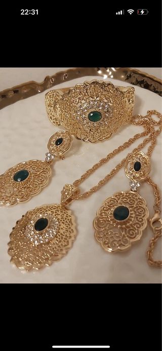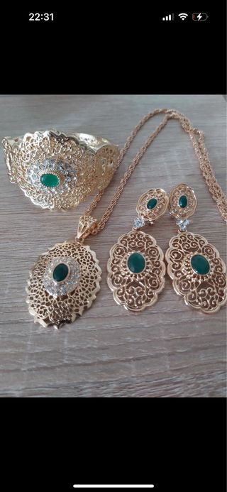 Conjunto de joyería oro y verde