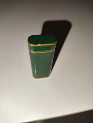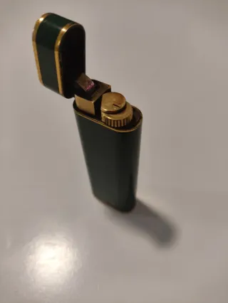 Elegante mechero de la marca Cartier Paris. - Diseño clásico y sofisticado. - Acabado en color verde con detalles en oro.