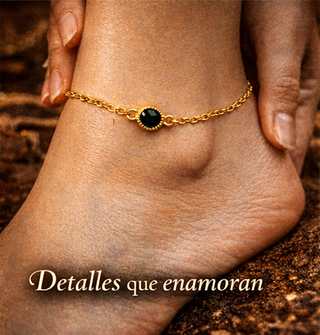 Tobillera Plata 925 Baño Oro 14k Negra