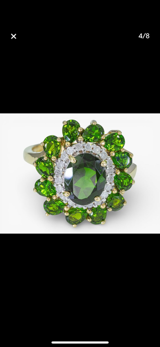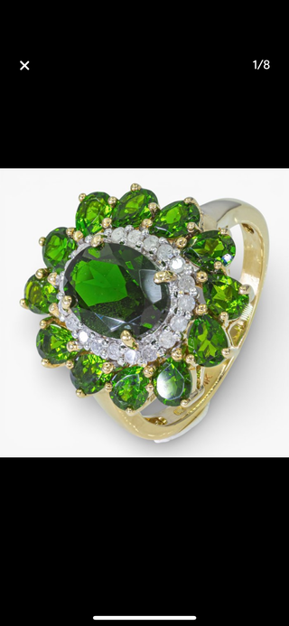 Anillo Oro 14K Diamantes y Diopsidos Certificado