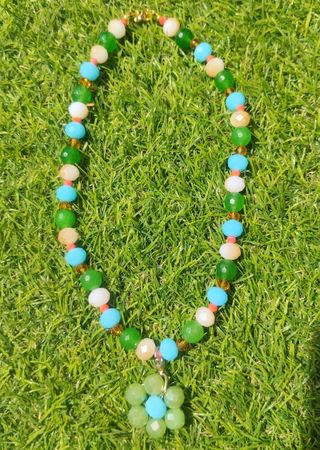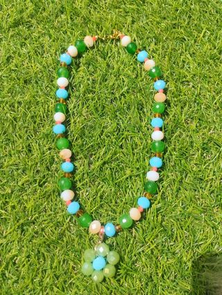 Precioso collar de piedra y cristal con tonalidades claras ,azul y verde. Cierre de inox. Más artículos en mi perfil 😉!! Collar joyas plata platino latón reloj Marrakech oro perla moda style handmade business gargantilla pulsera acero inoxidable collar gargantilla