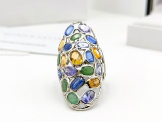 Anillo Plata 925 Esmeraldas y Citrinos Naturales