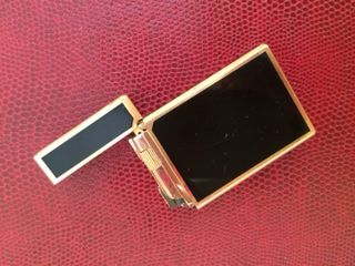 Elegante mechero S.T. Dupont con detalles chapados en oro de 18 micras y laca china negra. - Diseño clásico y refinado. - Combinación de materiales de alta calidad.