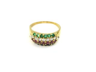 sortija oro 18k con piedra con circonita,esmeralda,rubi